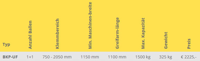 - Schmaler Klemmarm, um bequem zwischen nebeneinanderliegende Ballen zu kommen