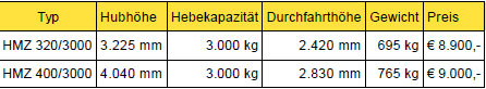 Dieser Typ Hubmast ist geeignet in Kombination mit Vornüber - Kippgeräte K80/K85/K90.