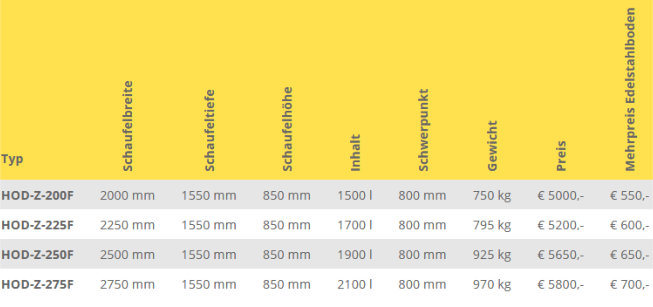 | Demontierbarer Aufsatzrand (+20% inhalt; für Getreide usw.) | € 550,- |