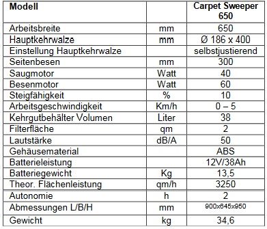 Mit der Carpet Sweeper 650 baut Fiorentini eine kompakte Kehrmaschine für den professionellen Einsatz. Speziell im Büro-, Einzelhandel und Hotellerie werden diese Maschinen eingesetzt.