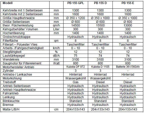 Die Besonderheit der Maschinen liegt in der Arbeitsbreite von 100,130 und160 cm sowie in Verbindung mit dem großen 300 Liter Behältervolumen, dadurch bietet sich eine sehr hohe Arbeitsleistung.