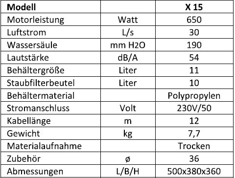 Das Modell X 15 ist ein professioneller Staubsauger, Er eignet sich ideal für Büro, Schule, Kindergarten, Behörden, Boutiquen,