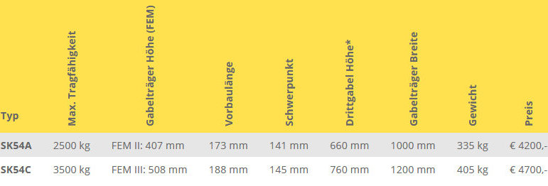 - Drittgabel in der Breite einstellbar