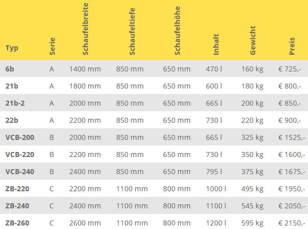 Startseite » Anbaugeräte » Neu » Wifo » Schaufeln