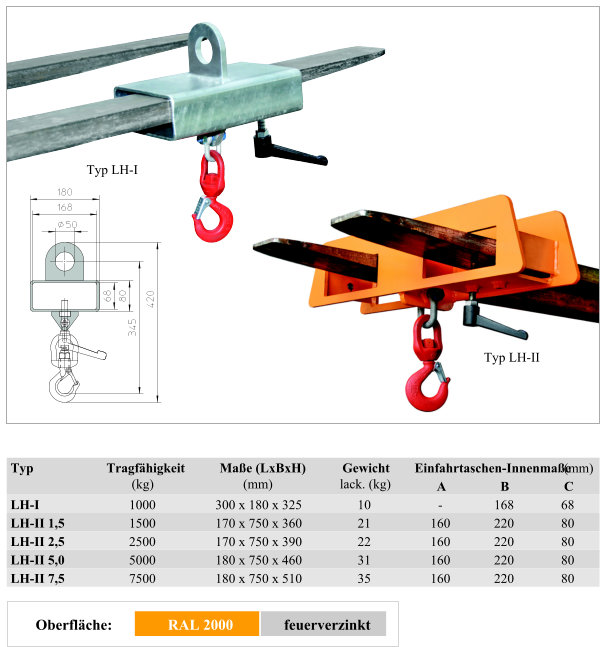 - Aufnahme mit 2 Gabelzinken (auch für Pratzenstapler geeignet)