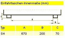 - Einfahrtaschen für Gabelzinkenaufnahme, Einfahrtaschenabstand 670 mm