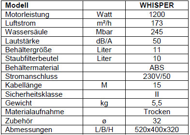 Der Whisper ist der Profisauger, ideal für Büro, Schule oder kleinere Werkstattbereiche. Er ist ein Volumenmodell im Dienstleistungsbereich.