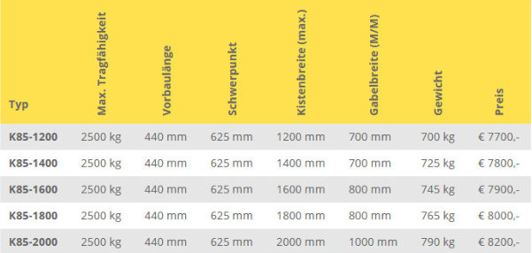 - Kistentiefe einstellbar von 850 - 1250 mm