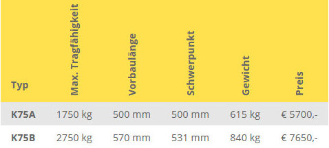 | Mit vier statt zwei Gabeln (für Kistenbreite > 2250 mm) | Auf Anfrage |